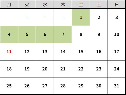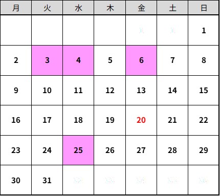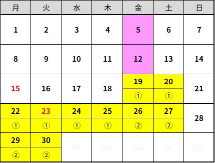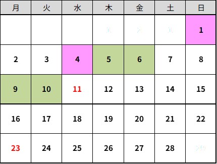 | 24日 | 勤労感謝の日振替(授業実施日) |