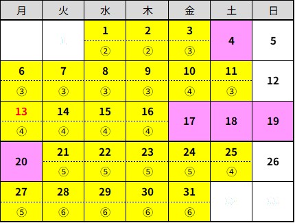 | 31日 | 【未定】新4年生ガイダンス期間及び健康診断 |