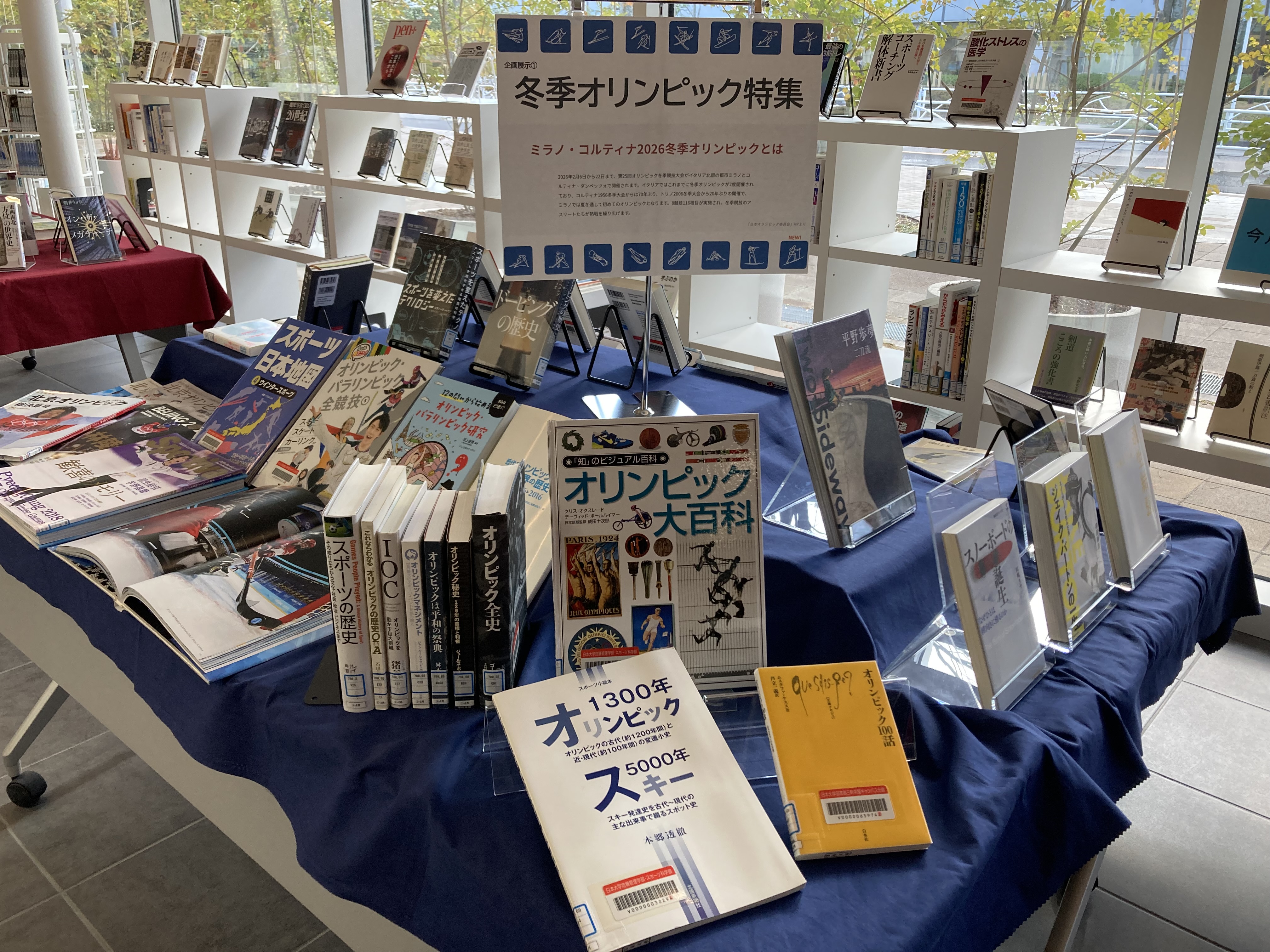 企画展示①「冬季オリンピック特集」 2026年2月6日から22日までの17日間、第25回オリンピック冬季競技大会がイタリア北部の都市ミラノとコルティナ・ダンペッツォで開催されます。 図書館では冬季オリンピックやウィンタースポーツ関連図書の展示をします。どうぞご利用ください。 企画展示①「冬季オリンピック特集」資料一覧 (PDF ファイル 0.89MB)