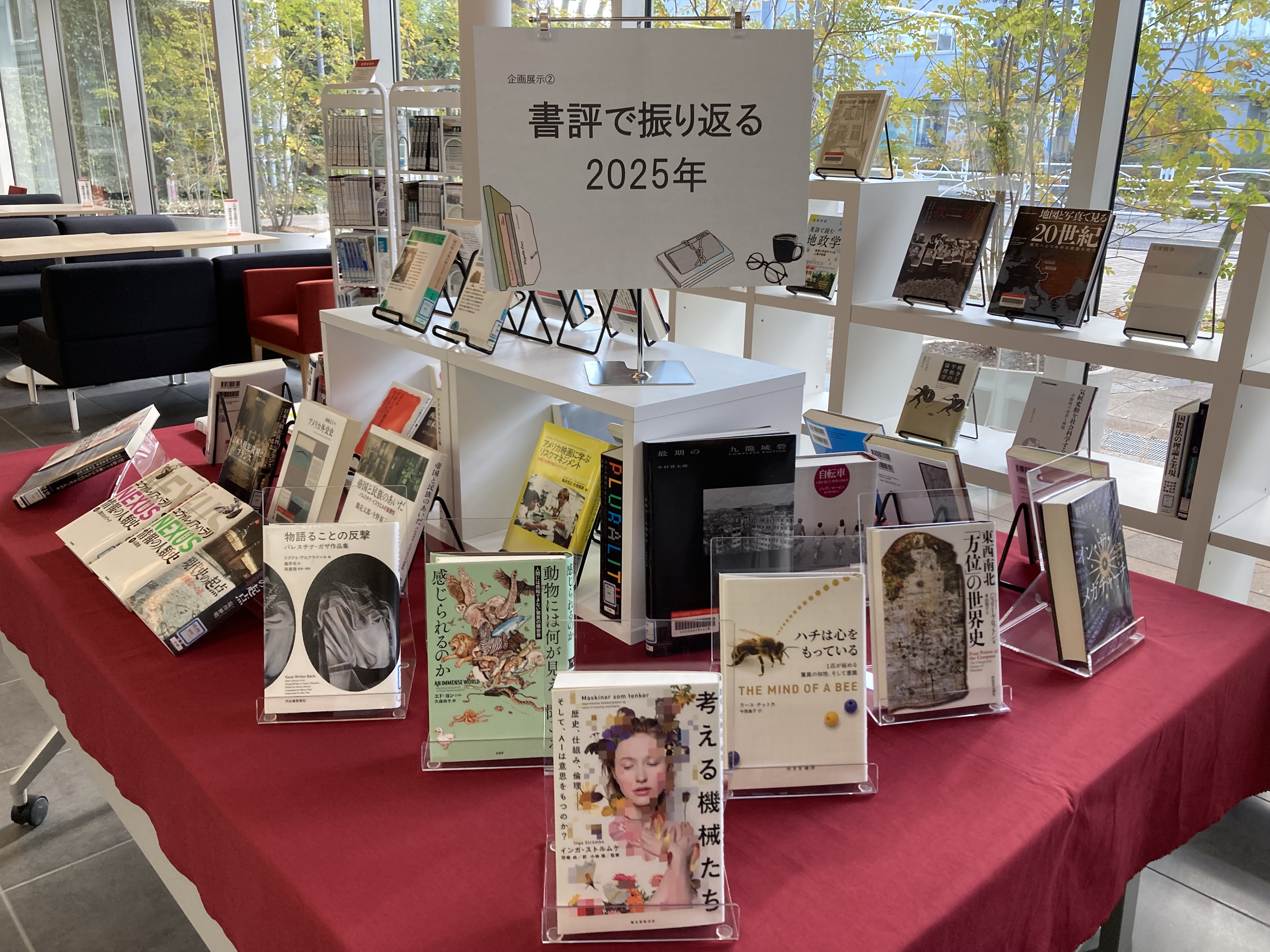 企画展示②「書評でふりかえる2025年」 2025年に新聞の書評で紹介された図書の展示です。おもしろそうだと思ったら、本を手に取ってみてください。 書評は新聞のデータベースで閲覧できます。詳しくは図書館カウンターまでお問合せください。 ぜひご利用ください。 企画展示②「書評でふりかえる2025年」資料一覧 (PDF ファイル 0.95MB)